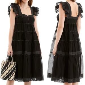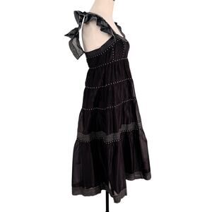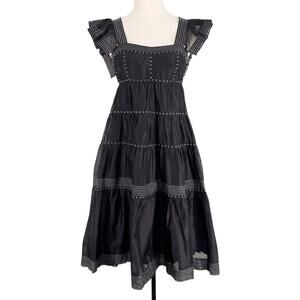 Ulla Johnson Rosalie Midi Dress Black Silk Tiered Prairie Cottagecore Size 4