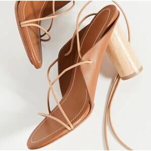 Ulla Johnson Roxie Tan Leather Lace Up Heels Saddle 10 Size 41 Sandals