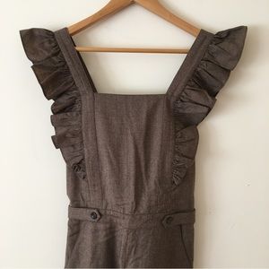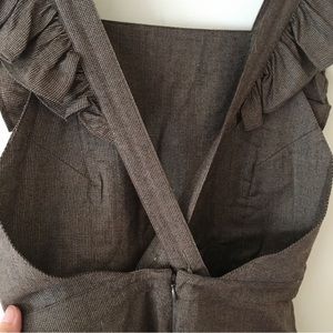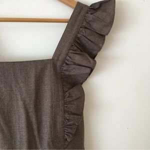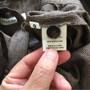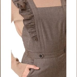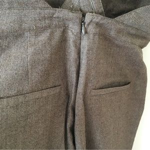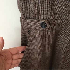 Ultra fine checked Italian merino wool, ruffles detailing, buttons tabs accent the waist,