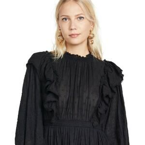 Ulla Johnson Ruffled Dorithie Dress Black Women 2 crochet long sleeve mini