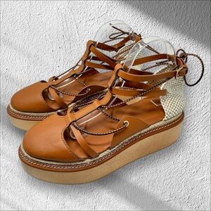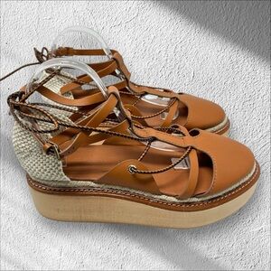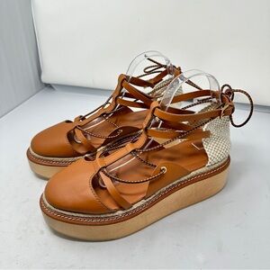 Ulla Johnson Salinas Wooden Platform Espadrilles Size 41 US 10 in Cognac Women’s