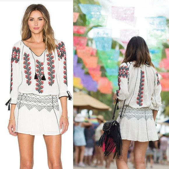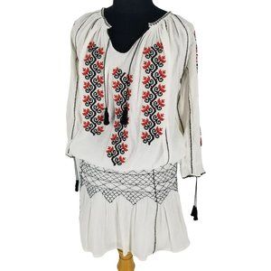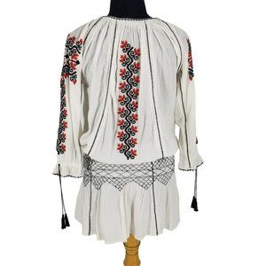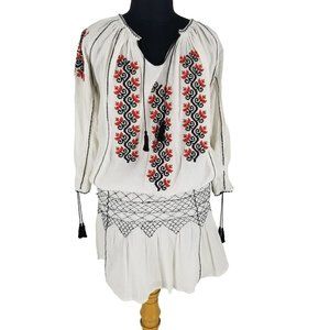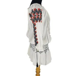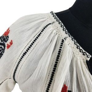 Ulla Johnson Samira White Black Red Embroidered Long Sleeve Mini Boho Dress