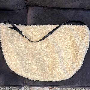 Ulla Johnson Shearling Large Bag Shoulder Tote Cream Adjustable Leather Strap