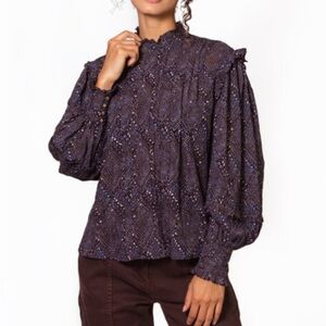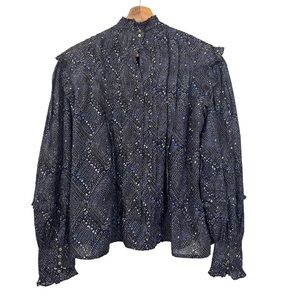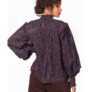 Ulla Johnson Sigrid Blouse In Indigo Diamond Size 0 Boho Puff Sleeve NWOT
