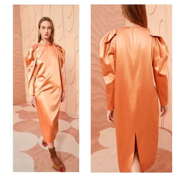 Ulla Johnson Silvana Dress Copper Satin Midi Long Sleeve Boho Sz 8 Cocktail NWT