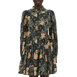 Ulla Johnson Simona Silk Long Sleeve Mini Dress in Nuit US 4