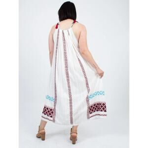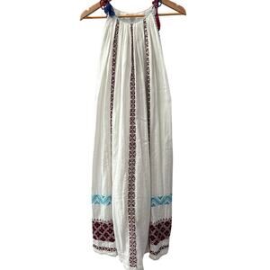 Ulla Johnson crafted another perfect boho midi dress - the details are on point - tasseled tie shoulder straps, fully embroidered throughout, & delicate lace detailed hemlines.