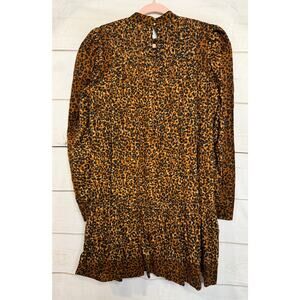 Ulla Johnson Size 6 Dress Long Sleeves Animal Print High Neck Chic Stylish