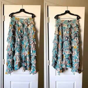 Ulla Johnson Skirt Isa Floral Tiered Ruffles Silk Taffeta Midi Topaz 6 GUC