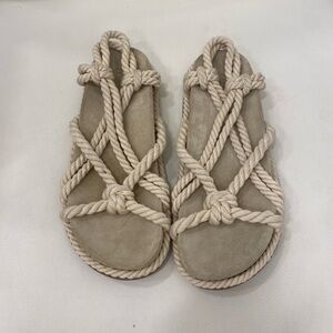 Ulla Johnson Suri Twisted Rope Sandals Strappy Slip On Slingback Beige EUSize 39