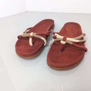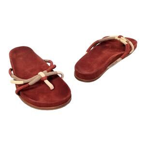 Ulla Johnson Tan Rust Color Adria Tricolor Suede Thong Sandals Knot Detail