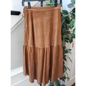 Ulla Johnson Tiered Skirt Womens Small Brown Tencel Miko Suede Ruffle Tie Waist