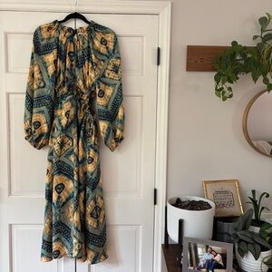 Ulla Johnson Tulia Dress Green Gold Constellation Silk Size 10 Cutouts Shibori