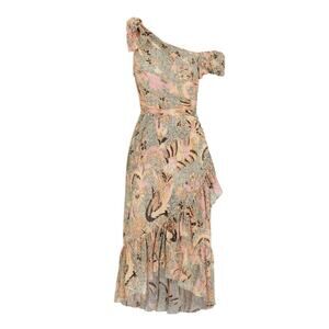 Ulla Johnson Uma Midi Dress Ivory Birds Of Paradise Ruffle Asymmetrical 0 2 Silk