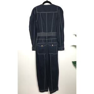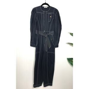 Ulla Johnson Utility Jumpsuit Leo Contrast Stitching Denim Blue Cotton Belted 2