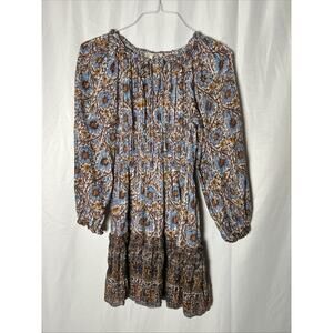PLEASE SEE SELLER NOTES BELOW This Ulla Johnson dress features a bohemian-inspired floral print with a ruffled hem and voluminous sleeves, offering a free-spirited aesthetic. Pair it with strappy sandals and minimalist jewelry to let the intricate pattern shine.