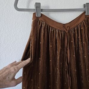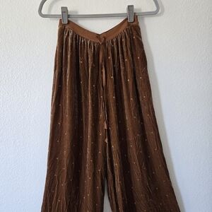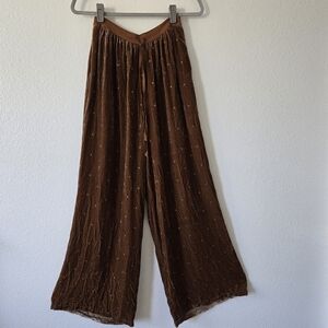 Ulla Johnson Velvet Silk Blend Embroidered Dots Brown Wide Leg Pants size 2