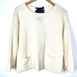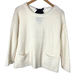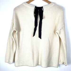 Ulla Johnson | White Sweater Black Bow Back Wool Alpaca Blend L