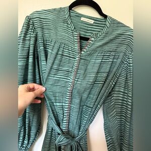 Ulla Johnson cotton Elegant Green button down Long, puff Sleeve shirt Dress