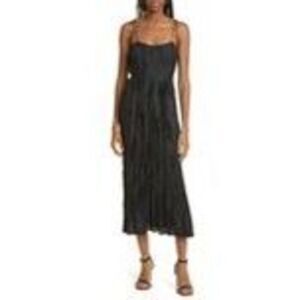 Ulla Johnson Women's Navy Orla Tie-Shoulder Plissé Midi Dress Size 12 NWOT