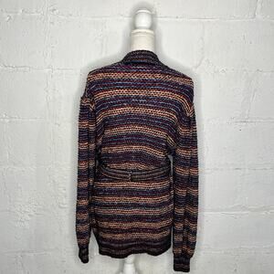 Ulla Johnson Women's Seba Cotton Blend Multicolor Horizonal Striped Button V-Neck Long sleeve Two Pocket Tie Waist Belt Cardigan Size Medium