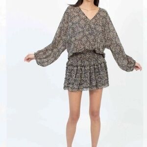 Ulla Johnson Women's Spotted Silk Ruffle Mini Dress Long Sleeve V Neck Dress in great condition!