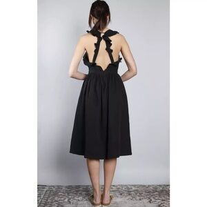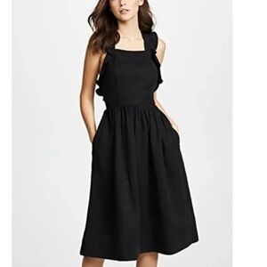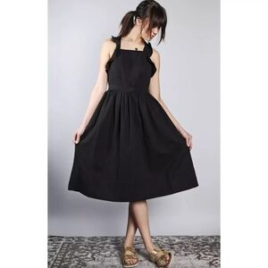Ruffled twill pinafore dress. Princess seams, adjustable cross-back straps, fitted waist, back zipper. Great condition, worn once to an event.