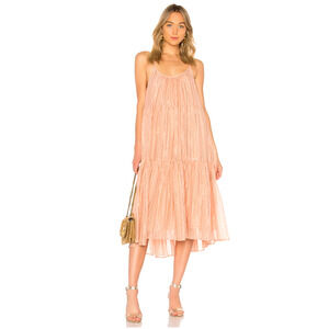 Ulla Johnson XS Samara Cotton Midi Dress Low Back Metallic Stripe Peach Pink 0 2