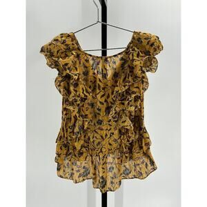 Ulla Johnson Yellow Silk Floral Print Crop Top Size 4