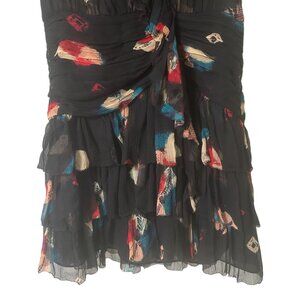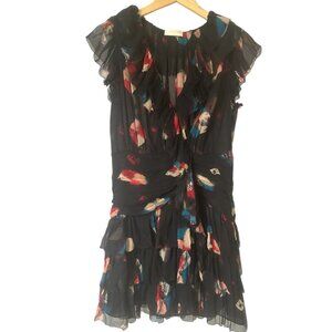 Ulla Johnson Zina Nocturne Ruffle Shibori Abstract Print Silk Crinkle Chiffon Mini Dress Size 2, Y2K, Feminine, Romantic Art To Wear, Frilly