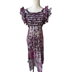Ulla Johnson Zoya Ruffle Trim Ikat Midi Patchwork Dress Size 8