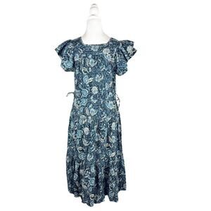 The Zuma Dress is decorated in our Meadow Floral Batik print on a soft cotton viscose base. Hand-stitching creates texture along the square yoke which is adorned with layered ties. Drawstring at the waist creates a gathered, cinched-in silhouette. This dress is unlined.