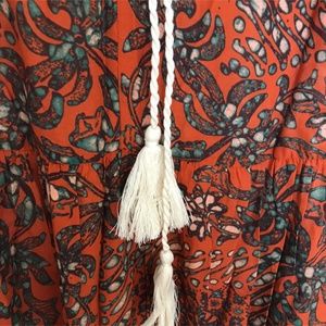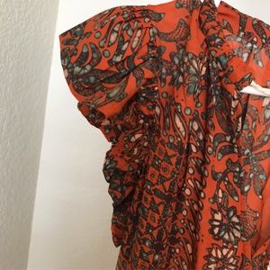 Beautiful Rich Burnt Orange color with teal... very flower, breezy and easy to wear.
