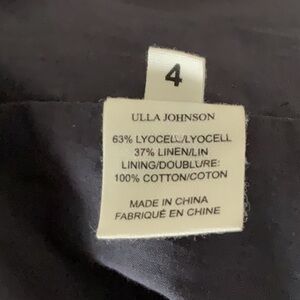 This black Ulla Johnson blazer is a must have! Perfect for any season, this lined linen blend blazer  (63% Lyocell 37% Linen, 100% cotton lining) pairs well  dressing up or staying casual. Wear with a dress, skirt and equally fabulous over your favorite T. The blazer offers a flat front one button closure, gathered back and buttons at the sleeve for rolling up for a more casual look. The blazer is a classic staple piece for any wardrobe!  Size 4