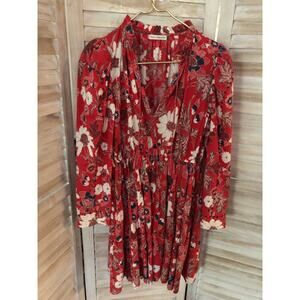 Ulla Johnson romantic red poppy floral cotton short dress small 4. Tassels.