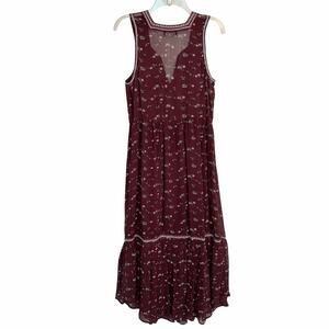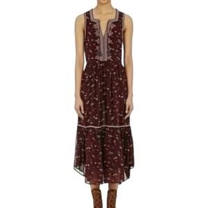 Ulla Johnson x Barney's New York Leena Embroidered Burgundy Silk Midi Dress 6