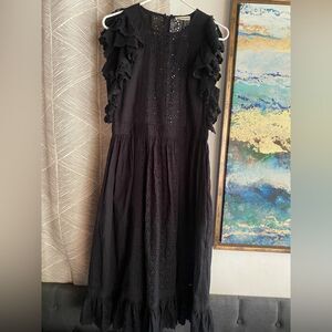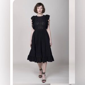 Ulla Johnson Bea Black Midi Dress Embroidered Ruffles Sleeve Sz 8 NWT