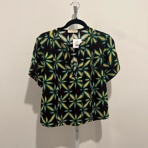 Ulla Johnson Rosie Olive Leaf-Print Short-Sleeve V-Neck Top Size 6