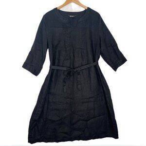 Ulla Popken 100% Linen Black Prairie Tie Waist Boho Cottage sz 12/14 Lagenlook