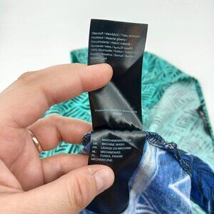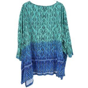 Ulla Popken Border Blues Print V-Neck Cotton Knit Tunic Top Green & Blue Tribal Print Ombre 3/4 Sleeves Pull On Lightweight Women's