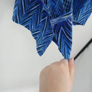 Ulla Popken Border Blues Print V-Neck Cotton Knit Tunic Top Tribal Ombre 32/34