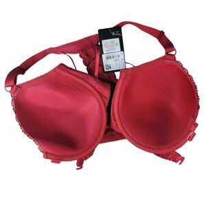Ulla Popken Red Lace Underwired Soft Shell Lace Front Closure Crimson Adjustable Strap NWT. Excellent condition with no stains or tears.