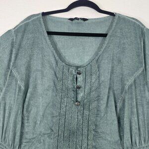 Ulla Popken Shift Dress Women Plus Size 24-26 Green Pom Pom Trim Short Sleeve Lightweight Boho. Pre-owned, missing small section of pom pom trim (see photo).