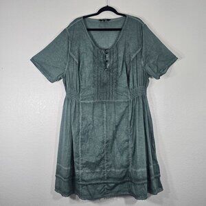 Ulla Popken Shift Dress Women Plus Size 24-26 Green Pom Pom Short Sleeve Boho