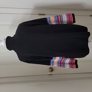 Ulla Popken Size 20/22 Black with Fair Isle Pattern Sleeve Turtleneck Sweater. Cozy Black Turtleneck Sweater, Long Sleeves with Fair Isle Pattern. Excellent Used Condition, No Holes, Rips, Stains or Snags. Please refer to measurements in photos to ensure proper fit.
