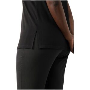 Slinky Stretch Tank - a must-have tank made in cool slinky high-quality rayon with a touch of spandex – the perfect blend for a soft and stretchy knit. Banded round neck and arm holes. Extra wide shoulders and side vents provide comfort and easy wearability. Clean finish hem.