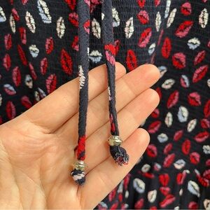 Ulla Popken Smocked Lip Print Blouse Tunic Top Flowy Plus Size 20/22