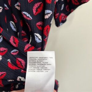 Ulla Popken Smocked Lip Print Blouse Tunic Top Flowy 3/4 Sleeves Size 20/22