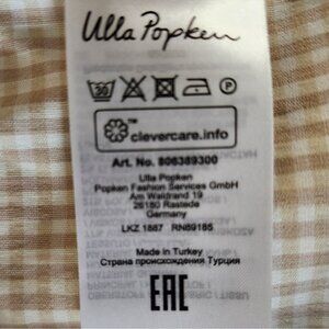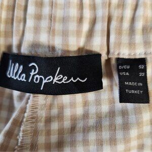 Ulla Popken Bengaline stretch crop pants. Small check pattern in beige and white. Pull on with elastic waist. Side vents. Slim leg. No pockets. Made in Turkey. Pre-owned in excellent condition.