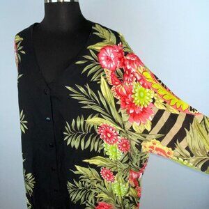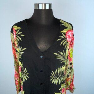 Ulla Popken Tunic Top Womens Tunic Button Down Tropical Floral Leaves 20 / 22 *
